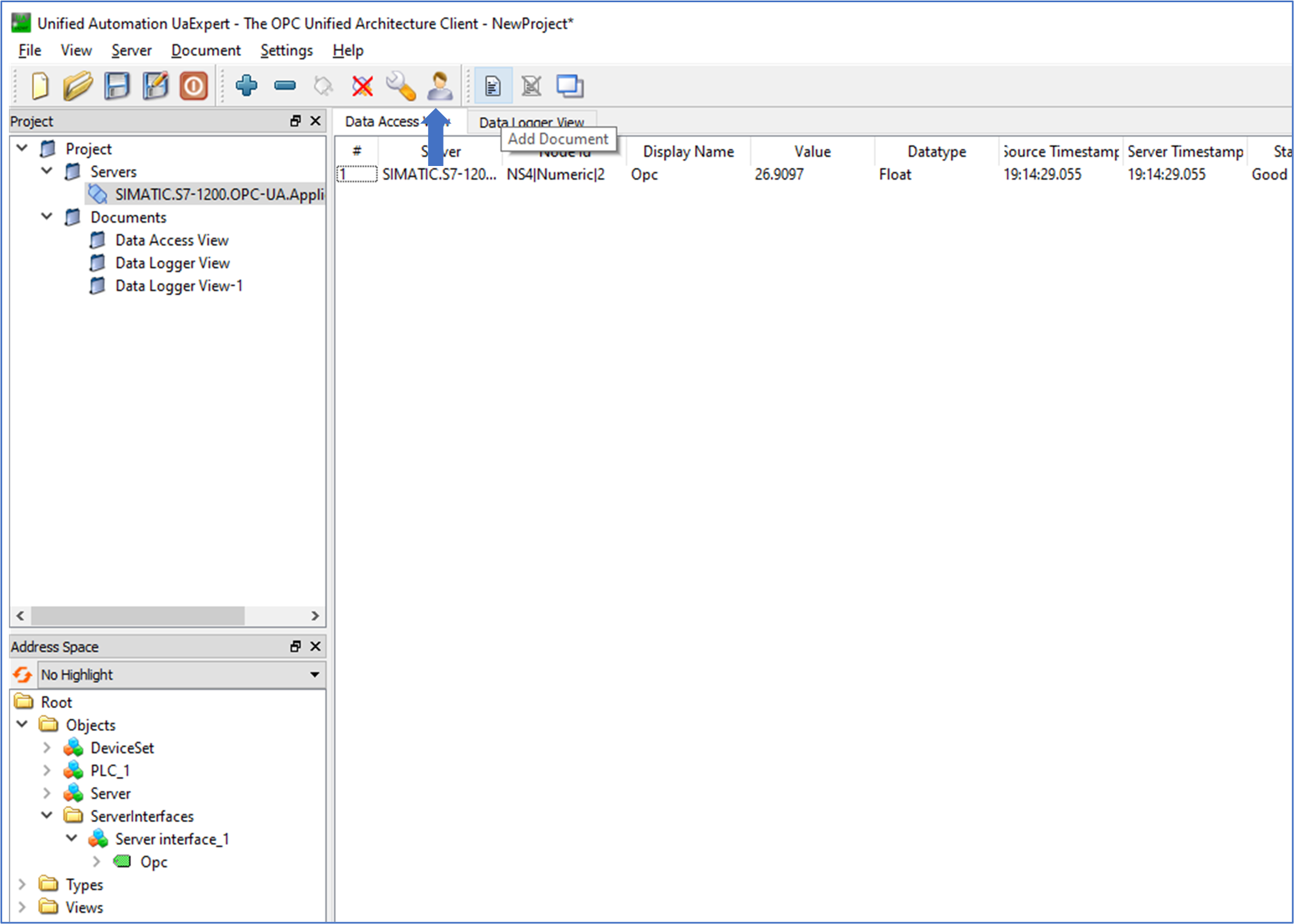 When you have added ”data logger view” do you have to drag “OPC server fil” into the middle.